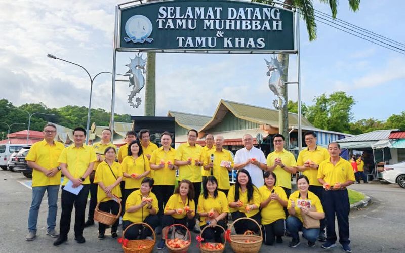 MIRI – Suasana di Tamu Muhibbah dan Open Air Market, Pujut ceria seawal jam 7 pagi Jumaat dengan aktiviti pengagihan limau mandarin sempena sambutan Tahun Baharu Cina.