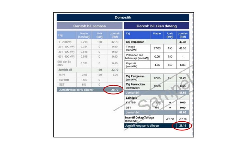 TNB turut memaklumkan pelanggan pada Julai akan menerima bil peralihan yang memaparkan dua caj penggunaan bagi tempoh berbeza, iaitu hingga 30 Jun 2025 (dikira mengikut tarif lama) dan bermula 1 Julai 2025 (berdasarkan struktur tarif baharu).