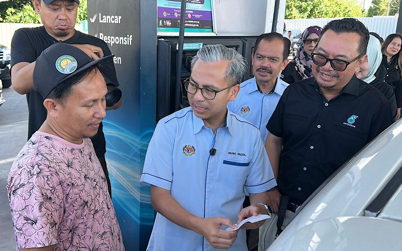 KOTA KINABALU – Menteri Komunikasi, Datuk Fahmi Fadzil meninjau pelaksanaan sistem BUDI MADANI RON95 (BUDI95) di Stesen Minyak Petronas Lintas Kepayan, di sini pada Khamis, bagi memastikan sistem tersebut berfungsi dengan baik.