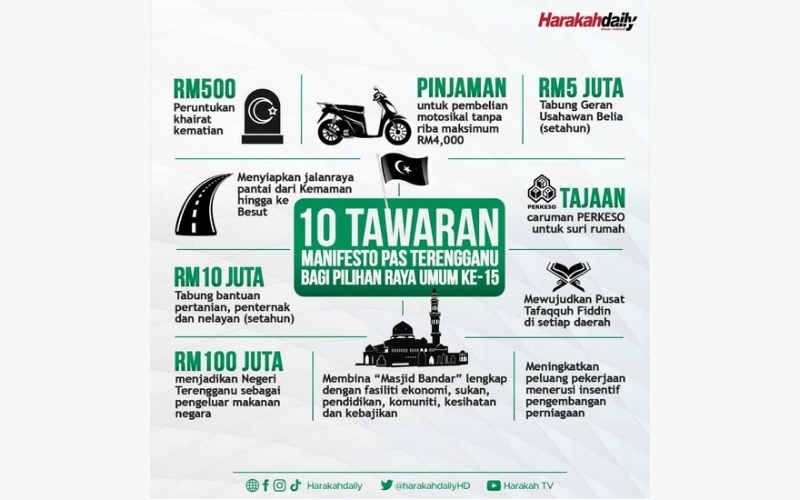 Di atas kertas, manifesto Pas Terengganu kelihatan suci dan sempurna 10 tawaran besar yang kononnya menjanjikan kesejahteraan rakyat dan ekonomi Islamik tanpa riba.