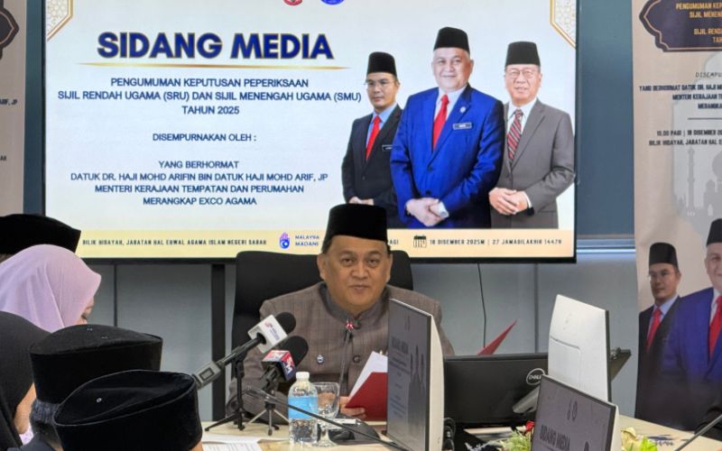 KOTA KINABALU – Keputusan Peperiksaan Sijil Rendah Ugama (SRU) dan Sijil Menengah Ugama (SMU) 2025 mencatatkan pencapaian paling membanggakan dalam tempoh sedekad apabila merekodkan jumlah calon memperoleh pangkat Mumtaz tertinggi sejak 10 tahun lalu.