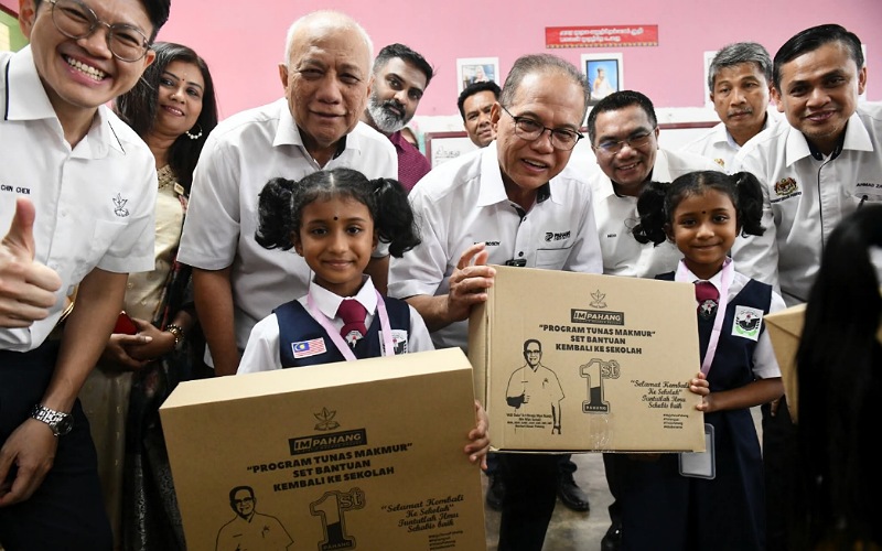 Program di bawah Inisiatif Makmur Pahang yang bermula sejak 2022 itu menyediakan set bantuan peralatan pembelajaran bernilai RM100 lengkap dan berjenama termasuk beg sekolah, alat tulis serta kelengkapan pembelajaran.