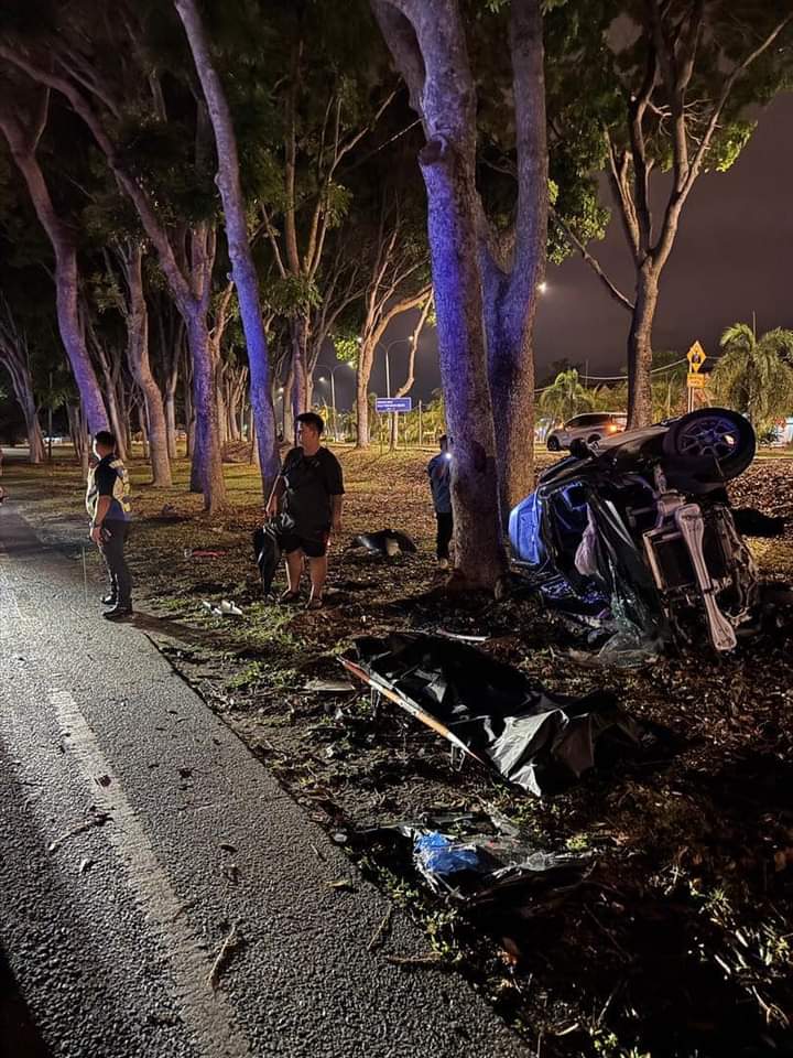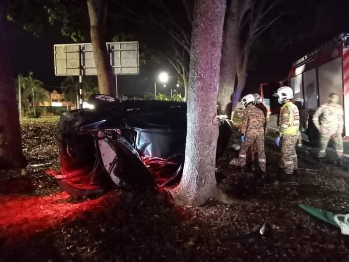 “Kemalangan jalan raya melibatkan sebuah kereta terbabas dan melanggar sebatang pokok berhampiran Bangunan Persekutuan Seri Manjung.