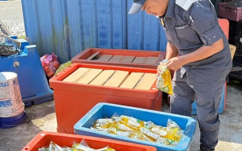 “Hasil pemeriksaan menemukan pek minyak masak 1kg disimpan dalam empat tong ais dan bakul raga di ruang belakang premis yang dijadikan dapur memasak.