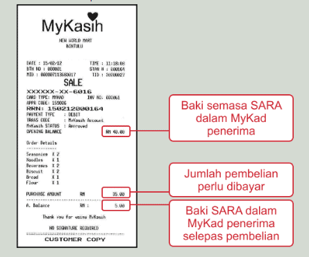 Penerima bantuan menyimpan resit untuk menyemak transaksi pembelian.