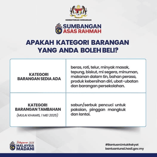 Mulai 1 Mei 2025, Barangan Kebersihan Rumah telah ditambah ke dalam senarai kategori SARA.