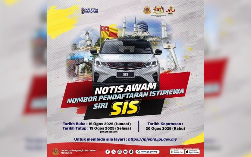 “NPI ‘SIS’ akan mula dibuka untuk bidaan kepada orang awam pada 15 Ogos (Jumaat) dan tarikh tutup pada 19 Ogos (Selasa) pada 10 malam,” menurut kenyataan itu.
