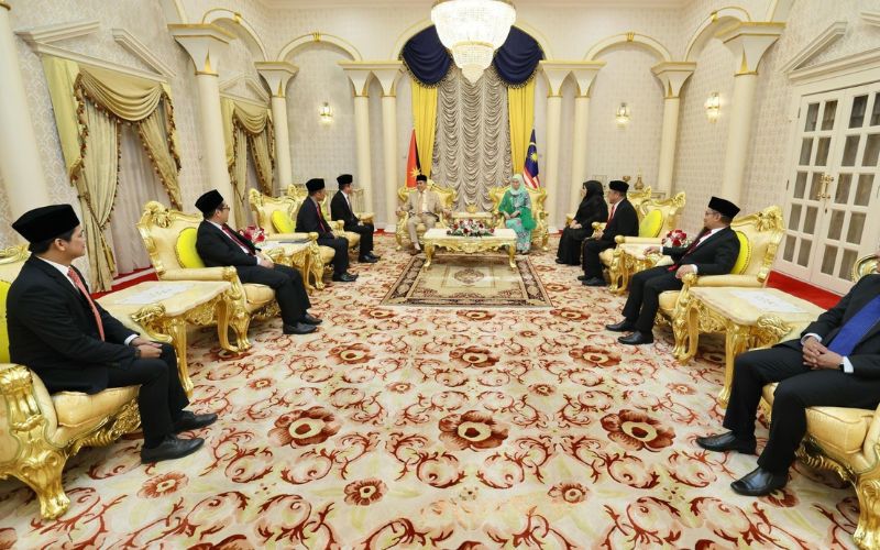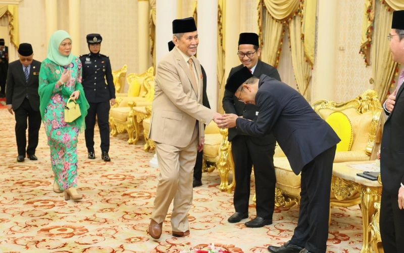 Sementara itu, Wan Junaidi dan isteri, Datin Seri Fauziah Mohd Sanusi menerima kunjungan hormat daripada delegasi Universiti Teknologi MARA (UiTM) Cawangan Sarawak yang diketuai oleh Profesor Dr. Firdaus Abdullah, Rektor UiTM Cawangan Sarawak di Bilik Menghadap Utama, Astana Negeri Sarawak.