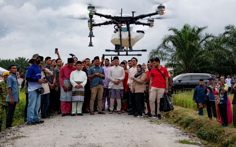 Beliau diberikan taklimat serta menyaksikan demonstrasi penggunaan perkhidmatan dron untuk kerja-kerja pertanian membabitkan kawasan tersebut.