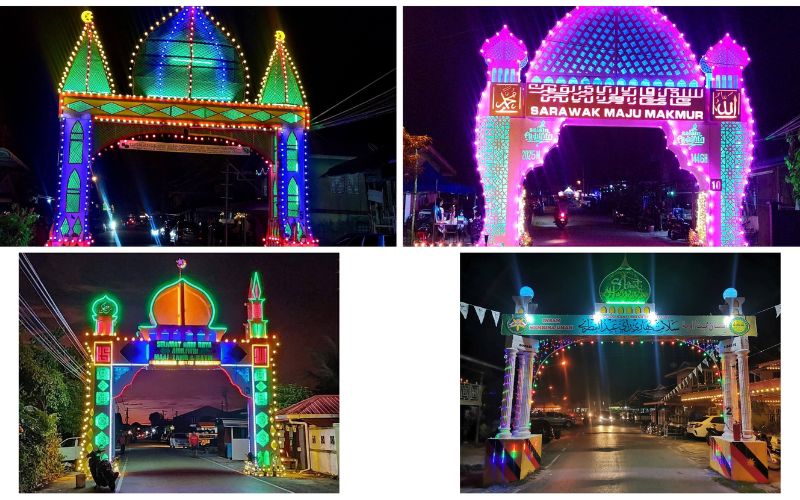 Sudah menjadi tradisi buat warga kampung di Saratok. Apabila tiba musim Ramadan dan Hari Raya Aidilfitri, suasana kampung sememangnya dimeriahkan dengan kehadiran lampu warna-warni pintu gerbang yang pelbagai corak dan ukiran.