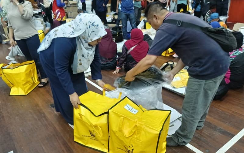 Tinjauan wartawan The Malaysia Press di Pusat Penjumlahan Undi SJK (C) Yuk Chin mendapati petugas Suruhanjaya Pilihan Raya (SPR) giat melakukan semakan isi peti undi.