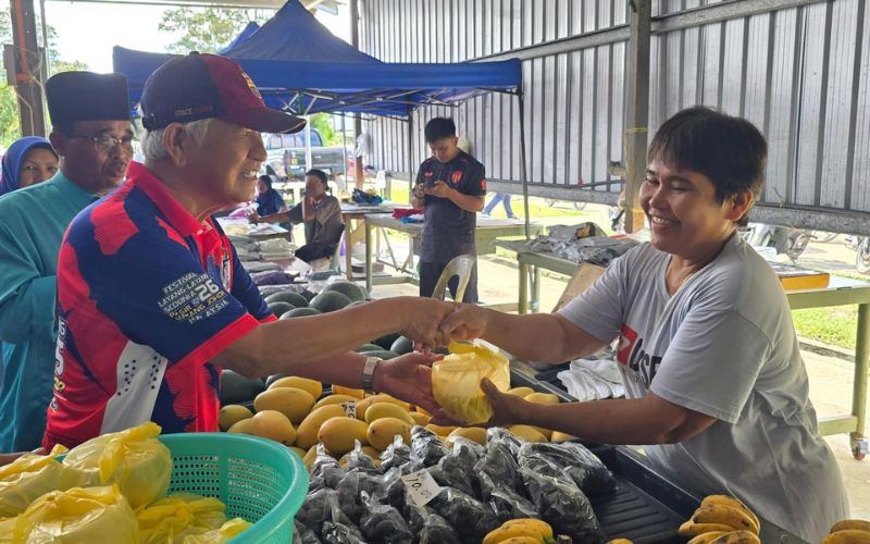 Sebagai simbolik, Mohd Chee Kadir menyerahkan bubur pedas kepada wakil RT yang terlibat dan turut mengedarkannya kepada peniaga serta pengunjung di Bazar Ramadan Nyabor.
