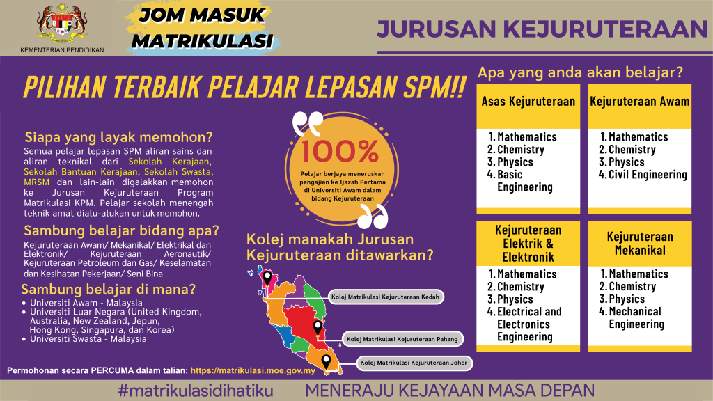 Rebut peluang! Permohonan matrikulasi 2025/2026 dibuka 1 Disember ini!