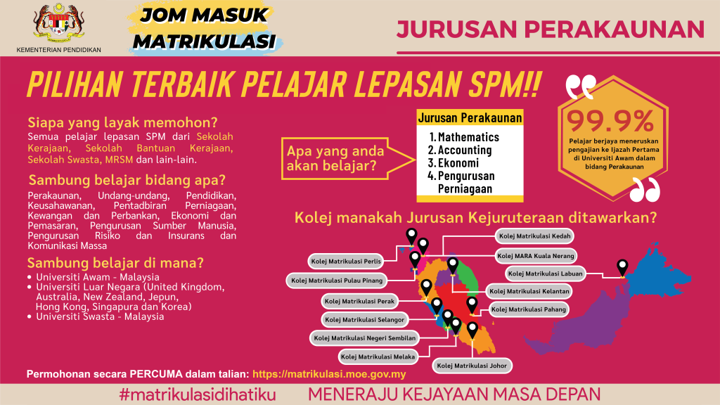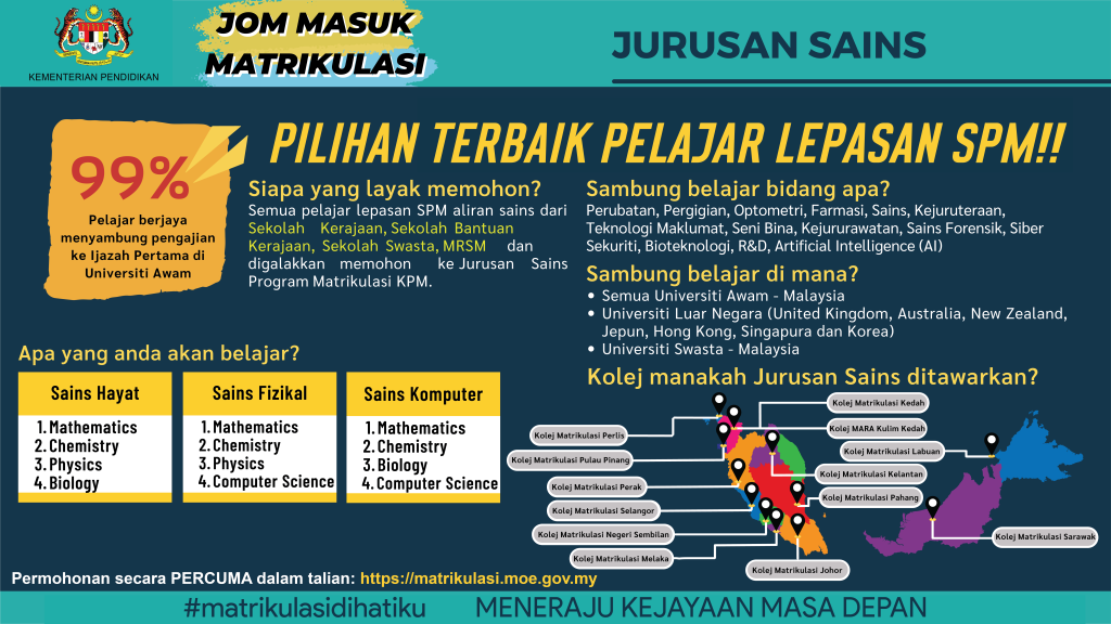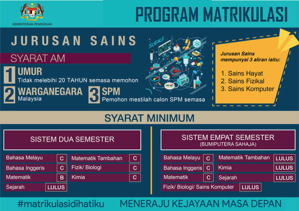 Sila layari pautan berikut –  Info Rasmi Program Matrikulasi
