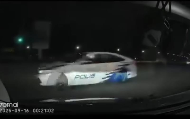 Terdahulu tular rakaman papan pemuka (dashcam) memaparkan pengguna jalan raya hampir terlanggar sebuah kereta polis yang dikatakan melanggar lampu isyarat merah, dan orang awam itu sempat membrek.