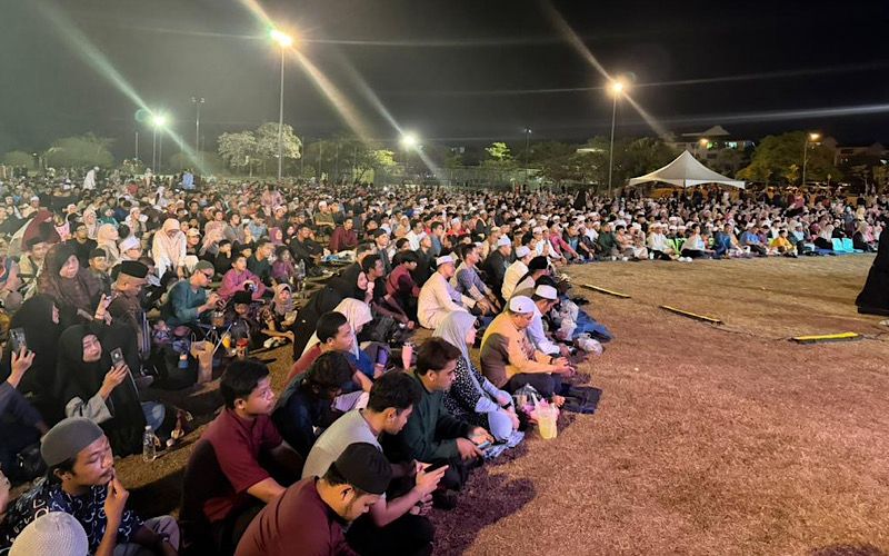 Walaupun cuaca hujan, orang ramai dilihat tetap setia menunggu dan tidak berganjak dari tempat duduk masing-masing sehingga majlis berakhir dengan doa penutup yang dipimpin oleh UAS.