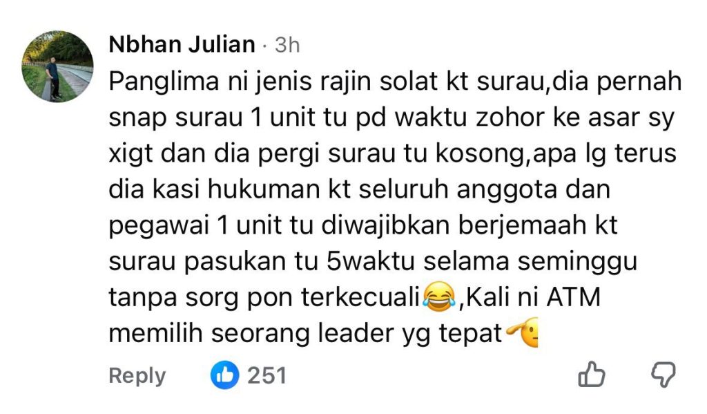PELANTIKAN Leftenan Jeneral Datuk Malek Razak Sulaiman sebagai Panglima Angkatan Tentera (PAT) menerima reaksi positif warga maya apabila ramai tampil berkongsi pengalaman peribadi berkhidmat bersama beliau sebelum ini.