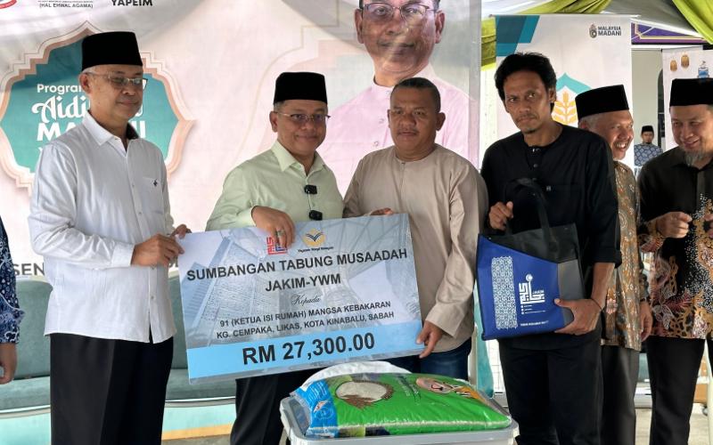 Turut disampaikan sumbangan Tabung Musaadah JAKIM berjumlah RM27,300 bagi 91 Ketua Isi Rumah (KIR) mangsa kebakaran Kampung Cempaka, Likas, Kota Kinabalu.
